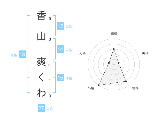 香山 爽くわさんの総格は27画の3点!