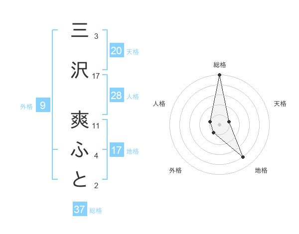 三沢 爽ふとさんを姓名の画数から五運を鑑定
