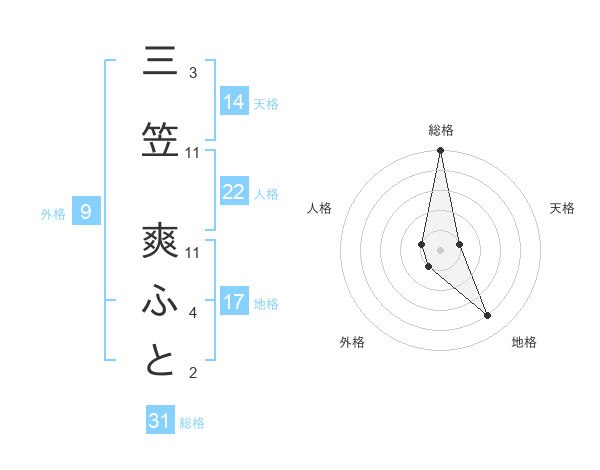 三笠 爽ふとさんを姓名の画数から五運を鑑定