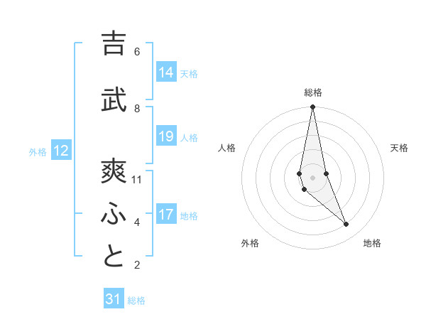 吉武 爽ふとさんを姓名の画数から五運を鑑定