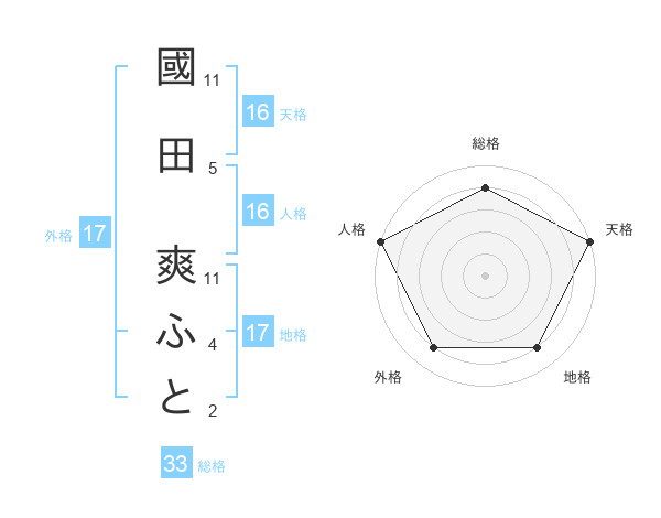 國田 爽ふとさんを姓名の画数から五運を鑑定