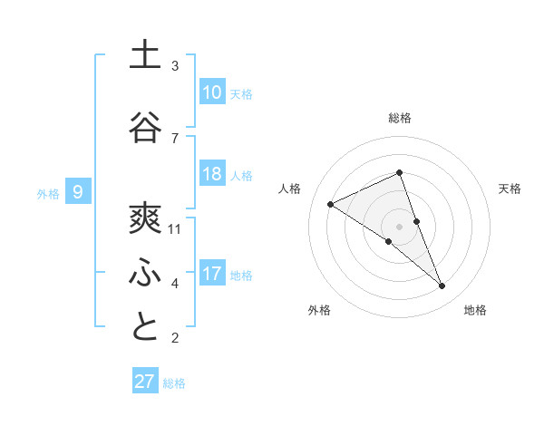 土谷 爽ふとさんの総格は27画の3点!