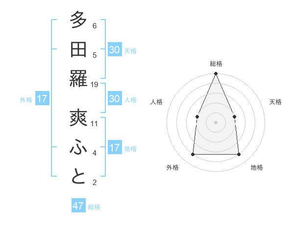 多田羅 爽ふとさんの地格は17画の4点!