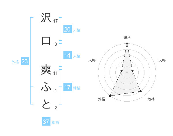 沢口 爽ふとさんを姓名の画数から五運を鑑定
