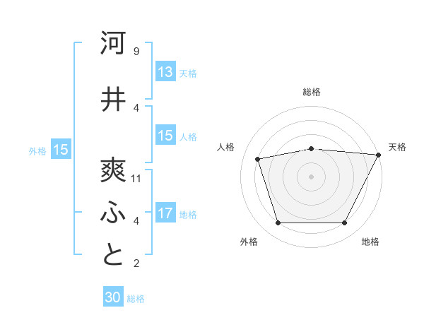 河井 爽ふとさんを姓名の画数から五運を鑑定