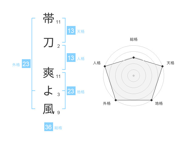 帯刀 爽よ風さんを姓名の画数から五運を鑑定