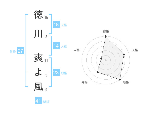 徳川 爽よ風さんを姓名の画数から五運を鑑定