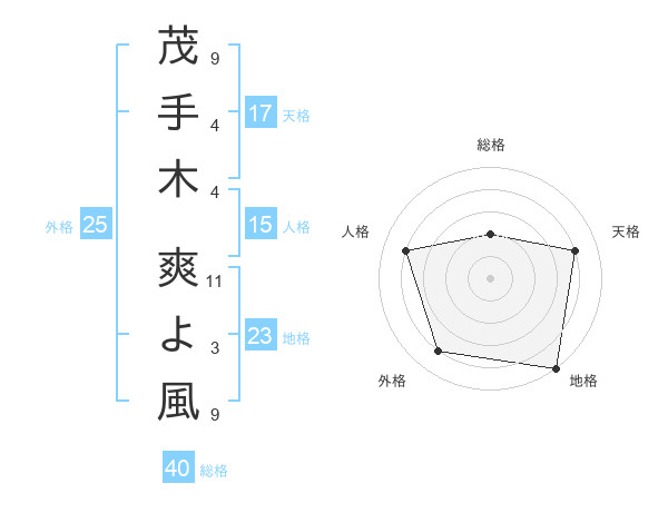 茂手木 爽よ風さんを姓名の画数から五運を鑑定
