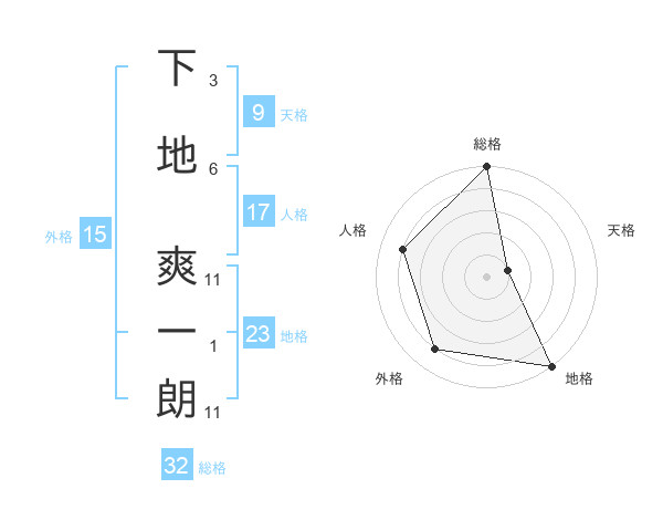 下地 爽一朗さんを姓名の画数から五運を鑑定