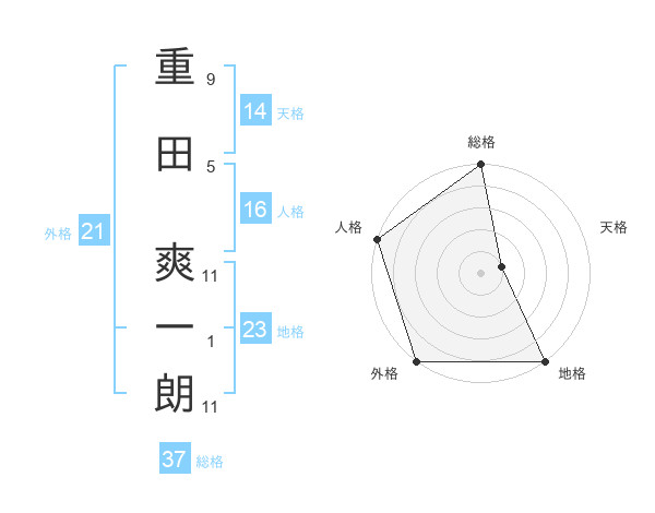 重田 爽一朗さんを姓名の画数から五運を鑑定