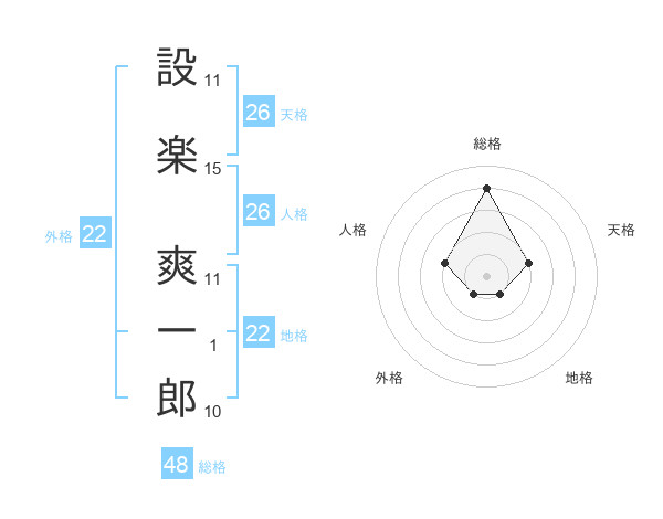設楽 爽一郎さんを姓名の画数から五運を鑑定