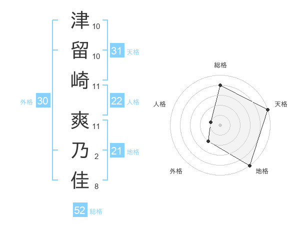 津留崎 爽乃佳さんを姓名の画数から五運を鑑定