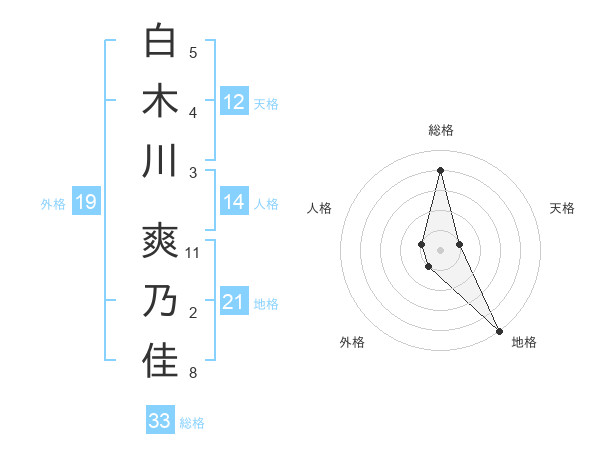 白木川 爽乃佳さんの総格は33画の4点!