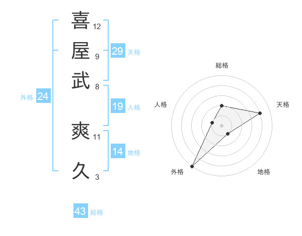 喜屋武 爽久さんを姓名の画数から五運を鑑定