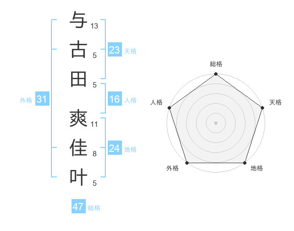 与古田 爽佳叶さんを姓名の画数から五運を鑑定