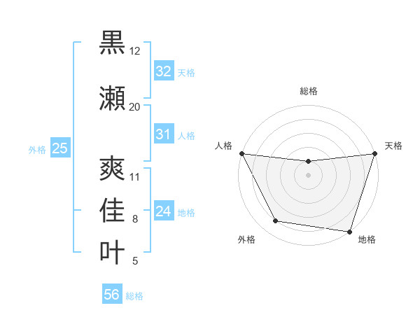 黒瀬 爽佳叶さんの総格は56画の1点!