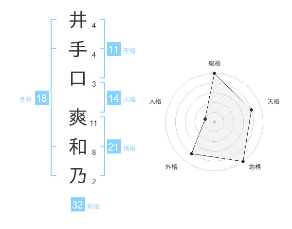 井手口 爽和乃さんの総格は32画の5点!