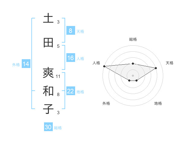 土田 爽和子さんを姓名の画数から五運を鑑定