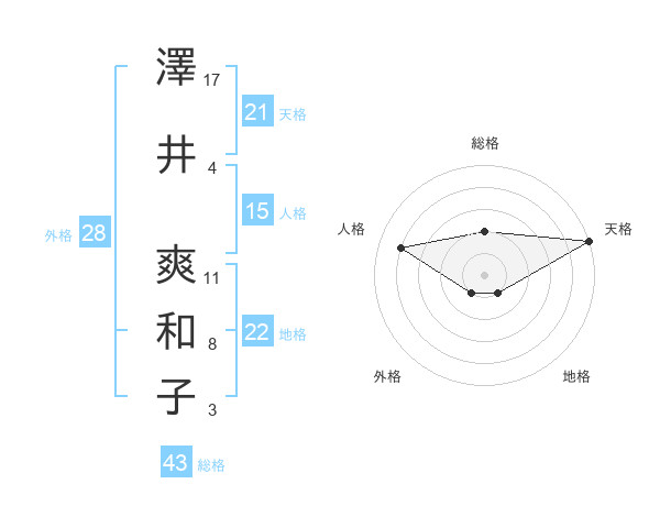 澤井 爽和子さんの天格は21画の5点!