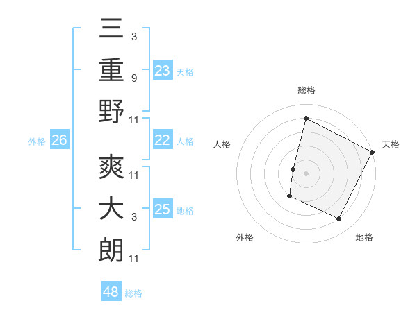 三重野 爽大朗さんを姓名の画数から五運を鑑定