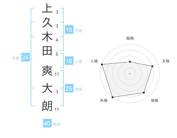 上久木田 爽大朗さんの外格は24画の5点!