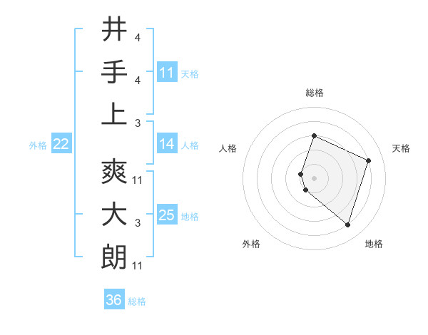 井手上 爽大朗さんを姓名の画数から五運を鑑定