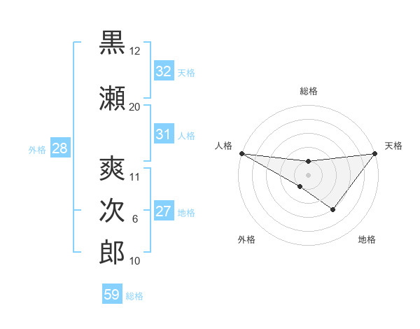 黒瀬 爽次郎さんの名前の鑑定結果は!