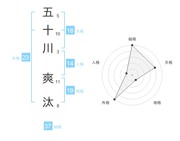 五十川 爽汰さんの総格は37画の5点