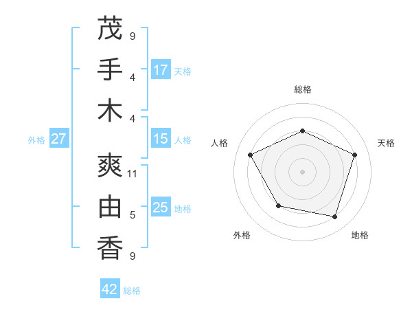 茂手木 爽由香さんの天格は17画の4点!