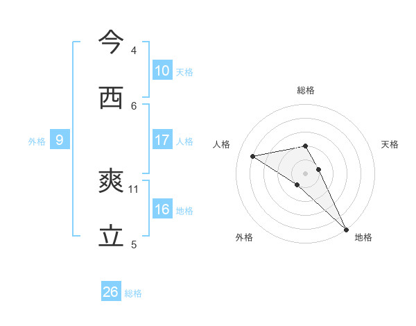 今西 爽立さんの総格は26画の2点!
