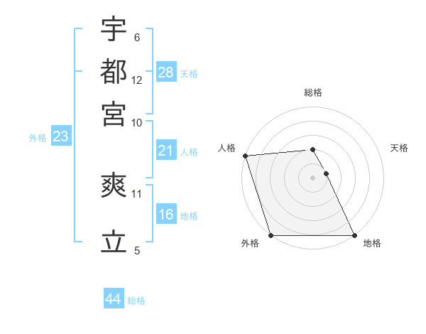宇都宮 爽立さんを姓名の画数から五運を鑑定