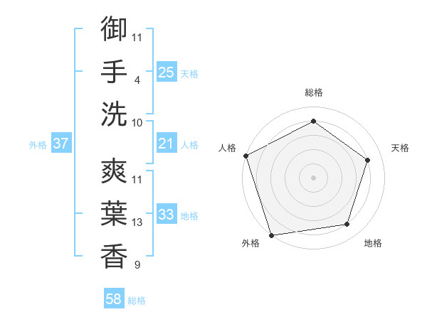御手洗 爽葉香さんを姓名の画数から五運を鑑定