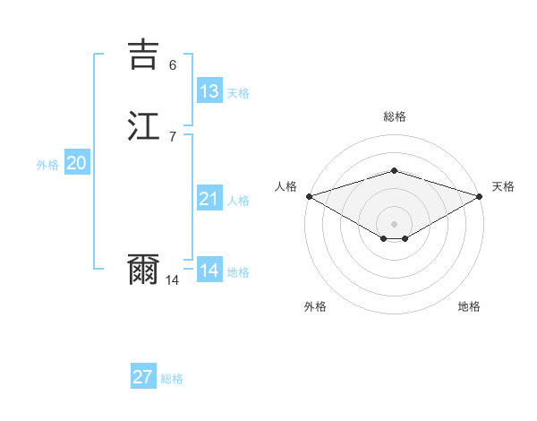 吉江 爾さんの天格は13画の5点!