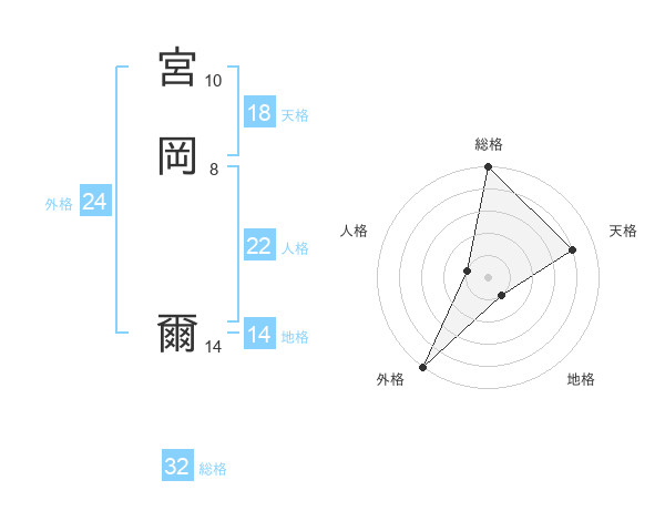 宮岡 爾さんの総格は32画の5点!