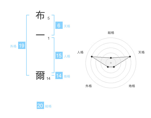 布一 爾さんの総格は20画の1点!