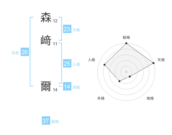 森﨑 爾さんの総格は37画の5点!
