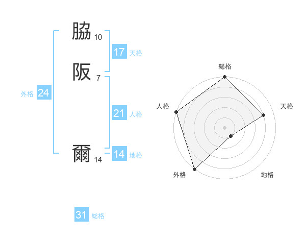 脇阪 爾さんの総格は31画の5点!