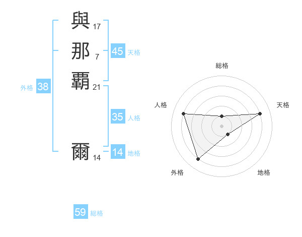 與那覇 爾さんを姓名の画数から五運を鑑定