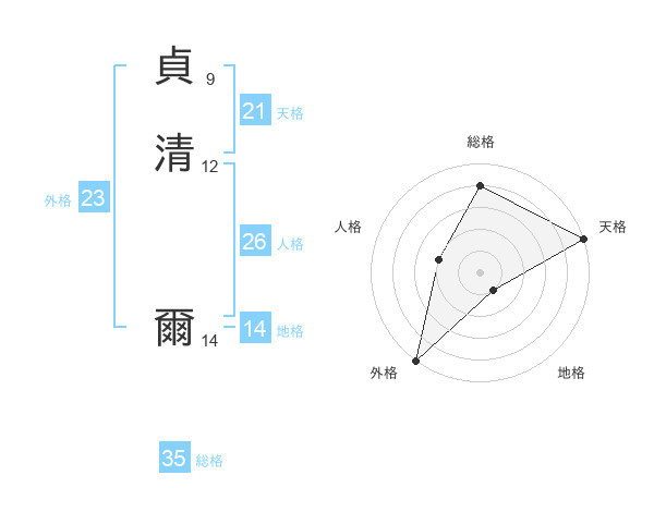 貞清 爾さんの総格は35画の4点!