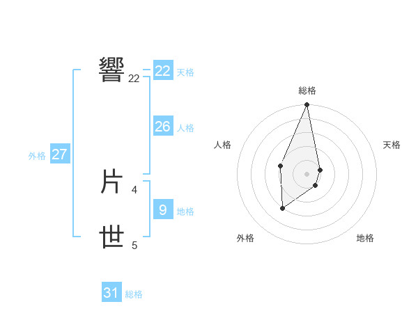 響 片世さんの総格は31画の5点!