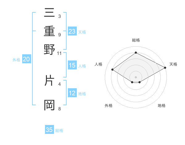 三重野 片岡さんを姓名の画数から五運を鑑定