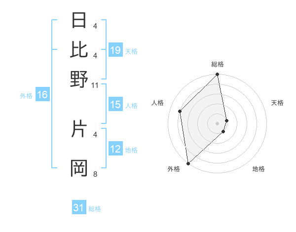 日比野 片岡さんの総格は31画の5点!