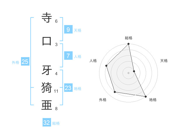 寺口 牙猗亜さんの総格は32画の5点!