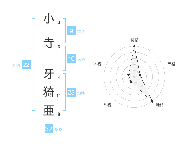 小寺 牙猗亜さんの総格は32画の5点!
