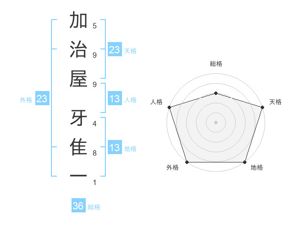 加治屋 牙隹一さんを姓名の画数から五運を鑑定