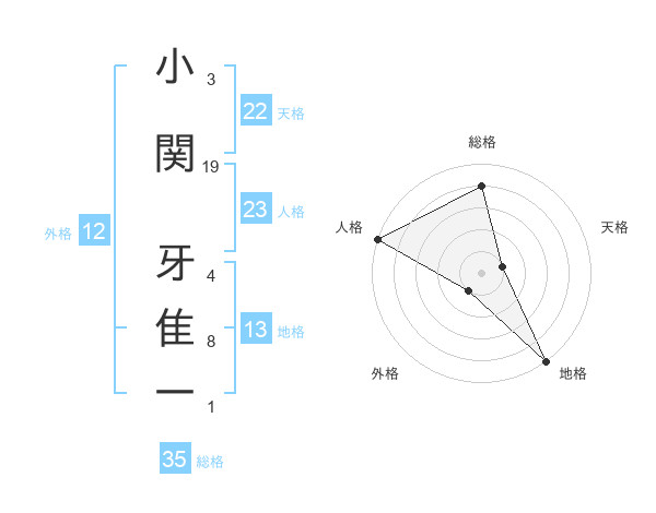 小関 牙隹一さんを姓名の画数から五運を鑑定