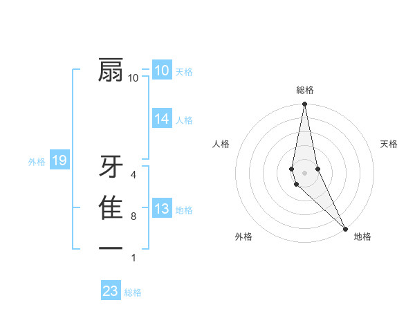 扇 牙隹一さんを姓名の画数から五運を鑑定