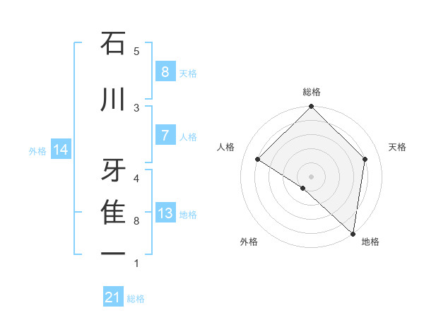 石川 牙隹一さんを姓名の画数から五運を鑑定