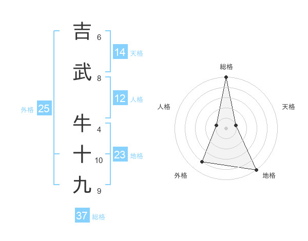 吉武 牛十九さんを姓名の画数から五運を鑑定