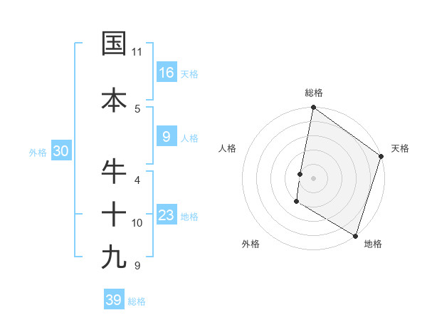 国本 牛十九さんを姓名の画数から五運を鑑定